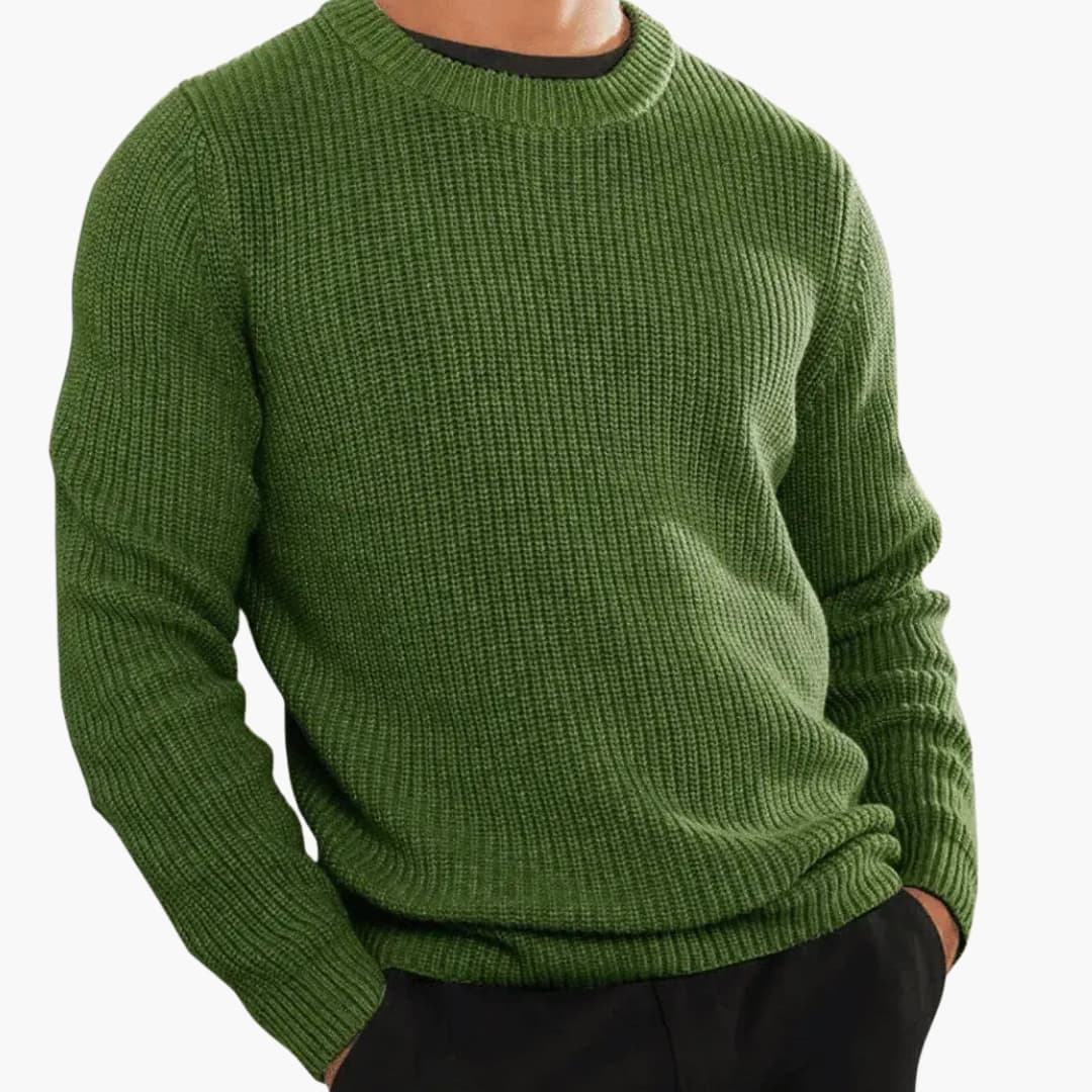 This men’s crewneck sweater includes a ribbed knit surface that creates a defined texture and structured look. The acrylic composition contributes to form stability, while the straight hem and cuffs maintain proportion. The balanced silhouette offers a clean appearance suitable for everyday coordination.