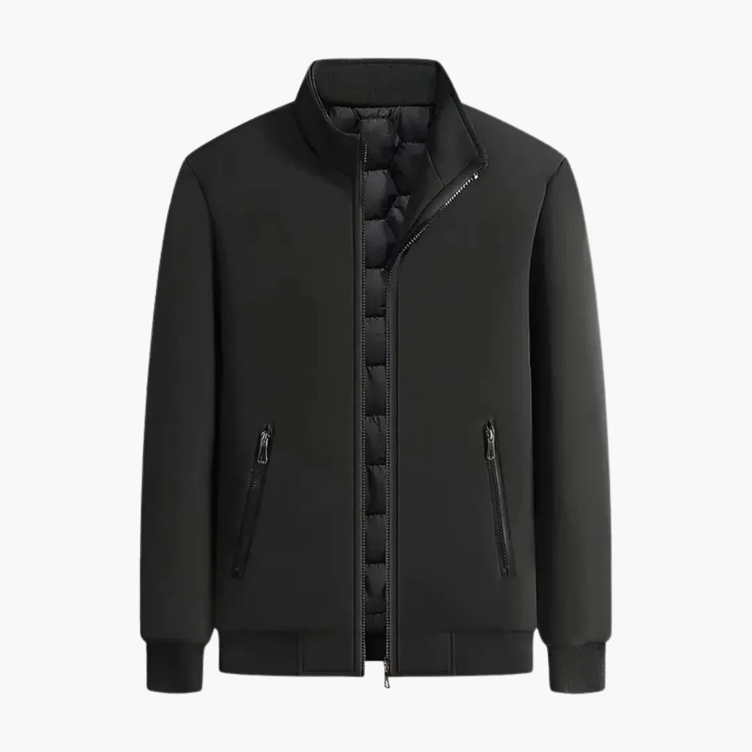 This men’s padded jacket includes a high stand collar, full zip closure, and two side zip pockets. The long sleeves and straight hem provide complete coverage. The outer layer and quilted interior help maintain warmth during colder seasons.