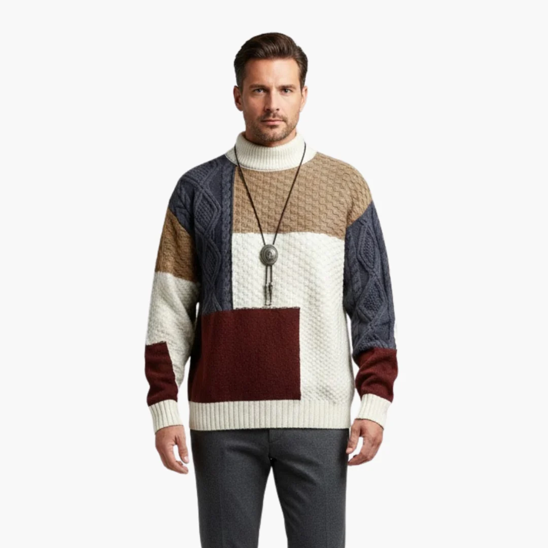 Patchwork Men's Sweater with Textured Knit Panels