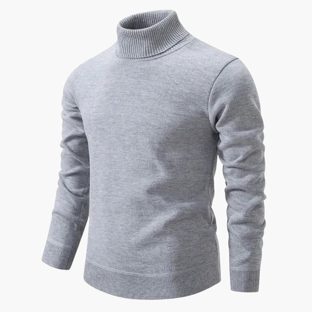 Men’s Turtleneck Sweater with Ribbed Neck and Hem