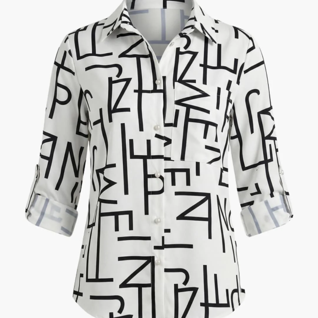 Women’s woven button-down blouse with a lapel collar and long sleeves