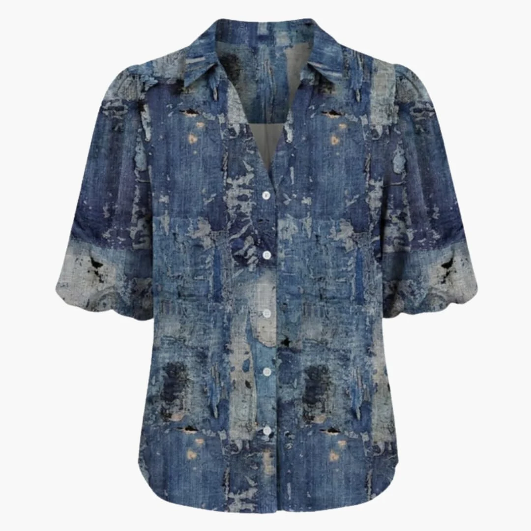 Women’s V-Neck Printed Blouse Woven Long Sleeve Pullover Top